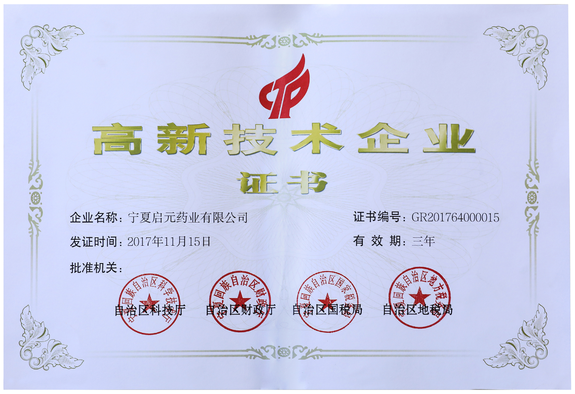 1、2005年1月,公司“啟元”、“寧藥”、“銀藥”牌注冊商標被自治區(qū)工商行政管理局認定為第5屆“寧夏著名商標”。